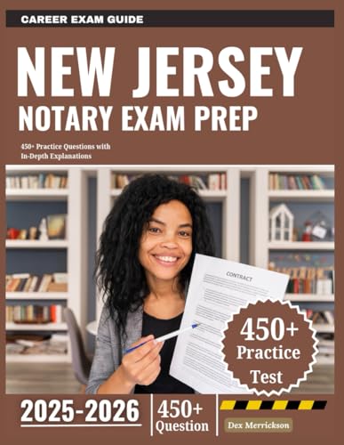 The New Jersey Notary Public exam focuses on identity screening, acknowledgments, jurats, journal compliance, fee limits, and remote online notarization requirements under New Jersey law and manual guidance.